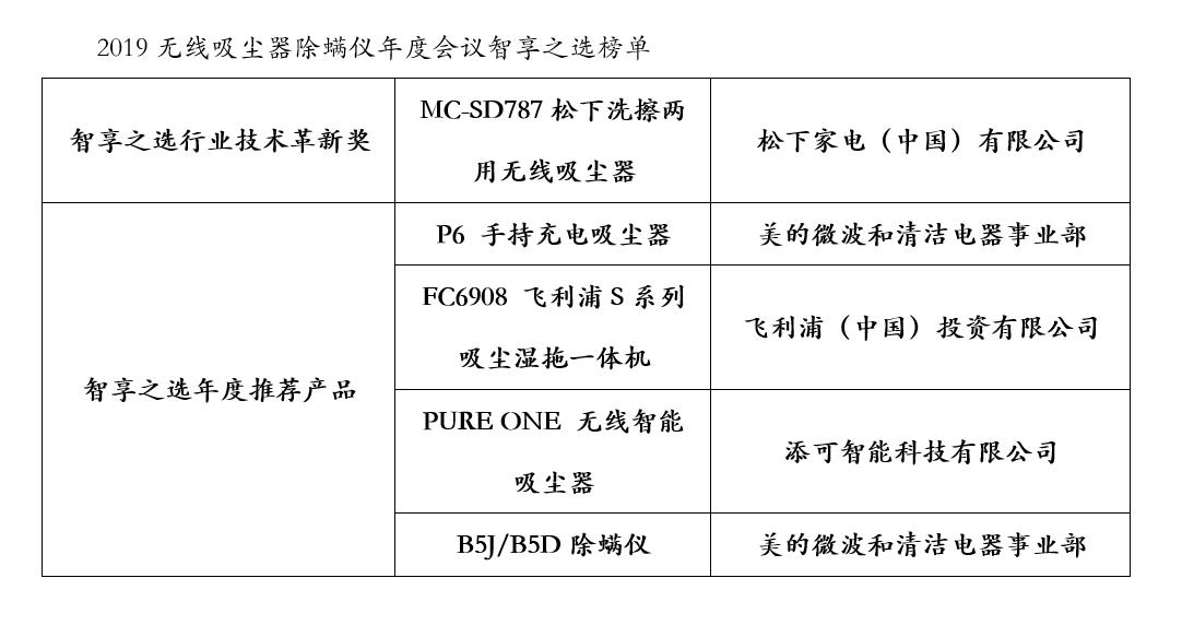 2019年4月25日,首届“无线吸尘器/除螨仪年度会议”在京顺利召开。会议隆重发布了《春季无线除尘除螨电器选购指南》,旨在指导消费者选购产品。同时,2019年“智享之选”吸尘器品牌和产品也在会上进行了集中展示,值得消费者期待。