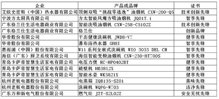为引导行业规范发展,并指导消费者科学选购,论坛期间,中国家用电器研究院对引领厨电行业品质潮流的“先锋”产品和企业进行了表彰。(以下排名不分先后)